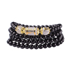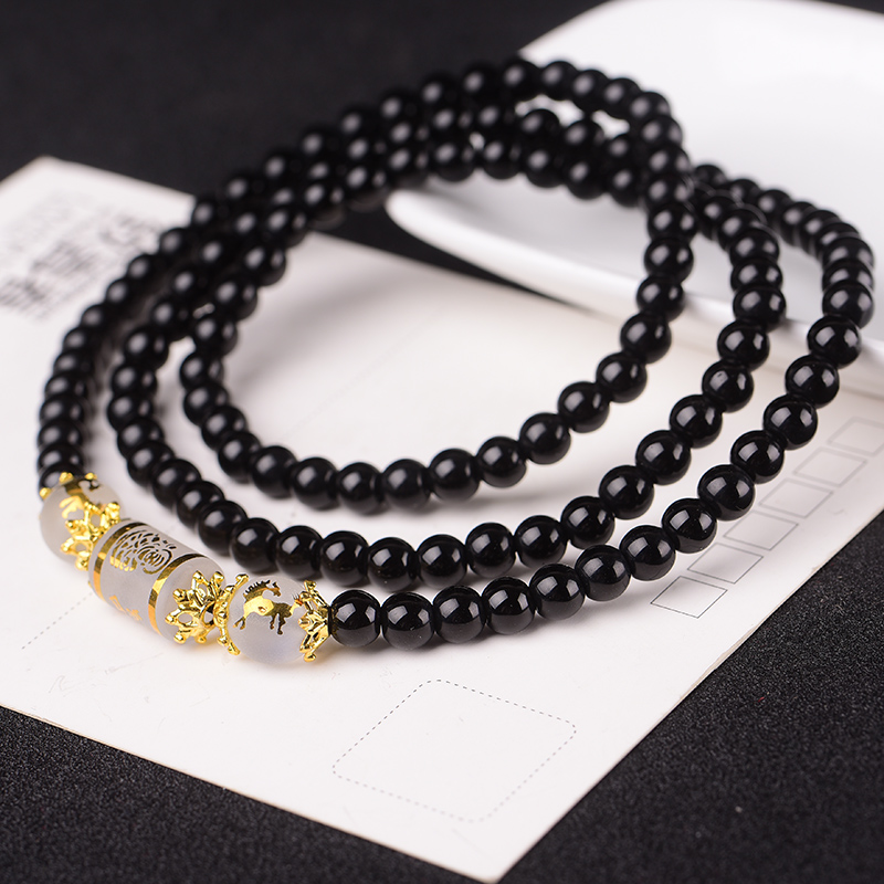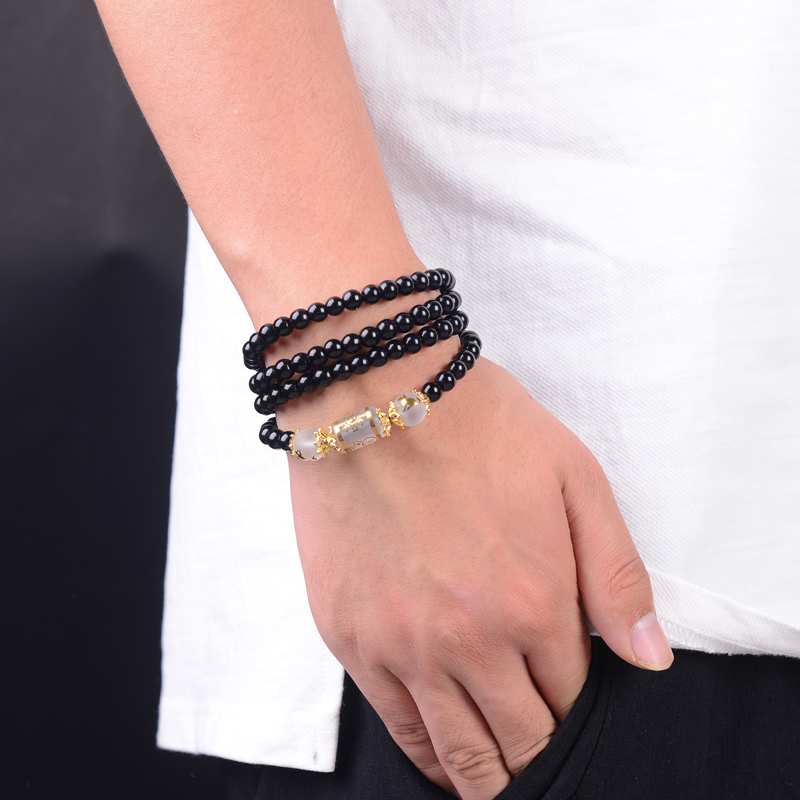 黑曜石多圈手链白水晶磨砂烫金生肖情侣款手串简约藏银配饰礼品