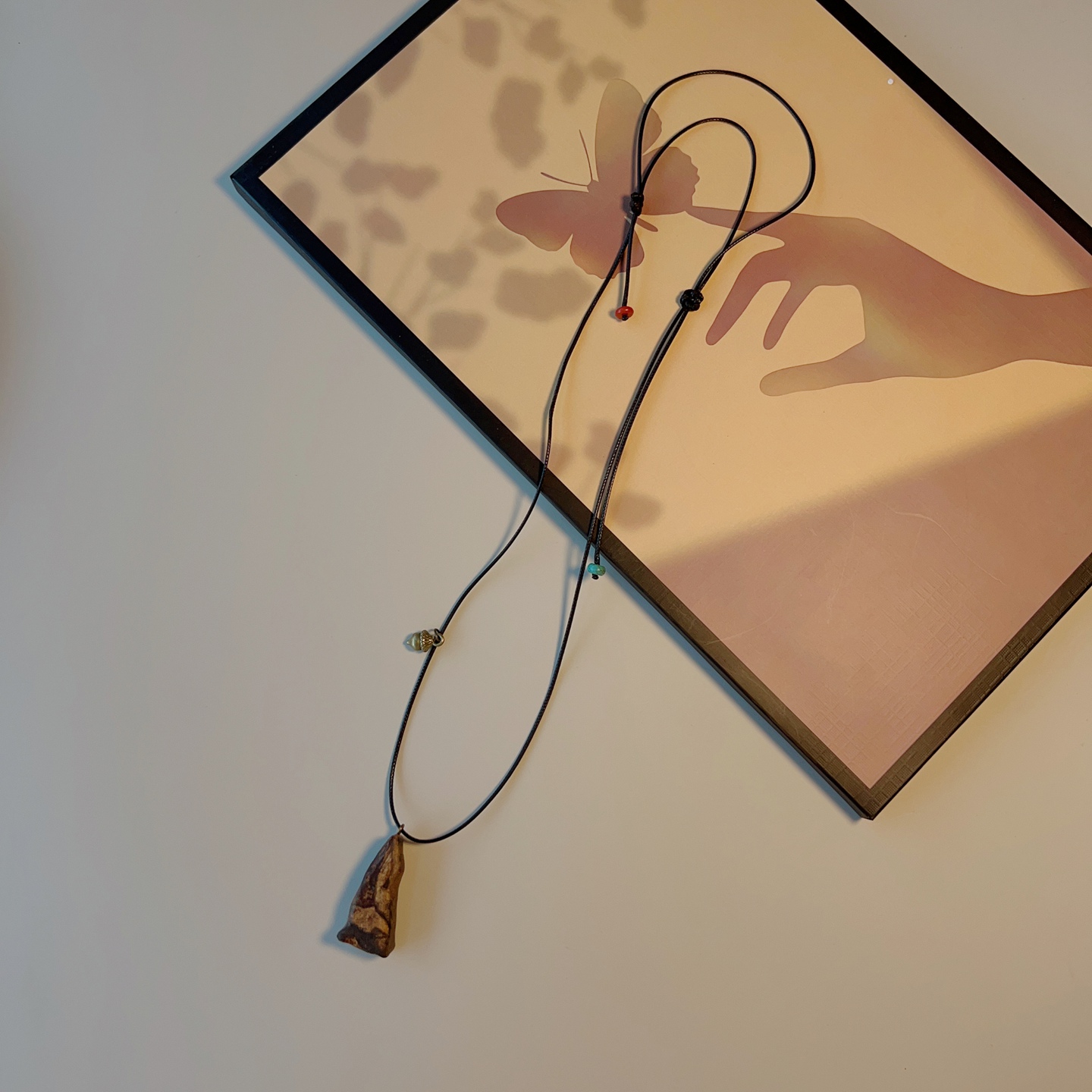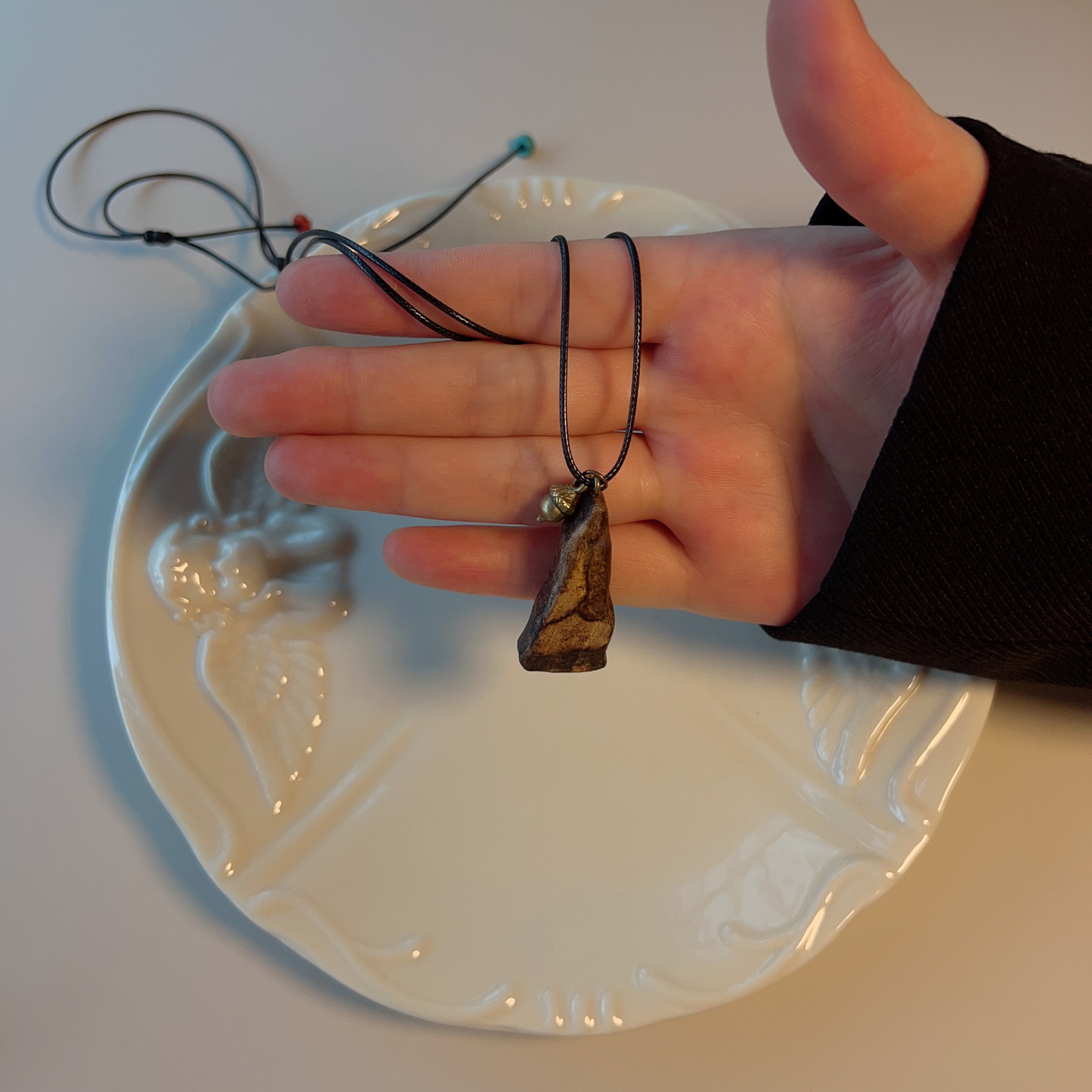 复古原创设计简约百搭沉香木吊坠皮绳项链个性独特中式长款颈链酷