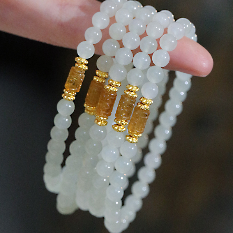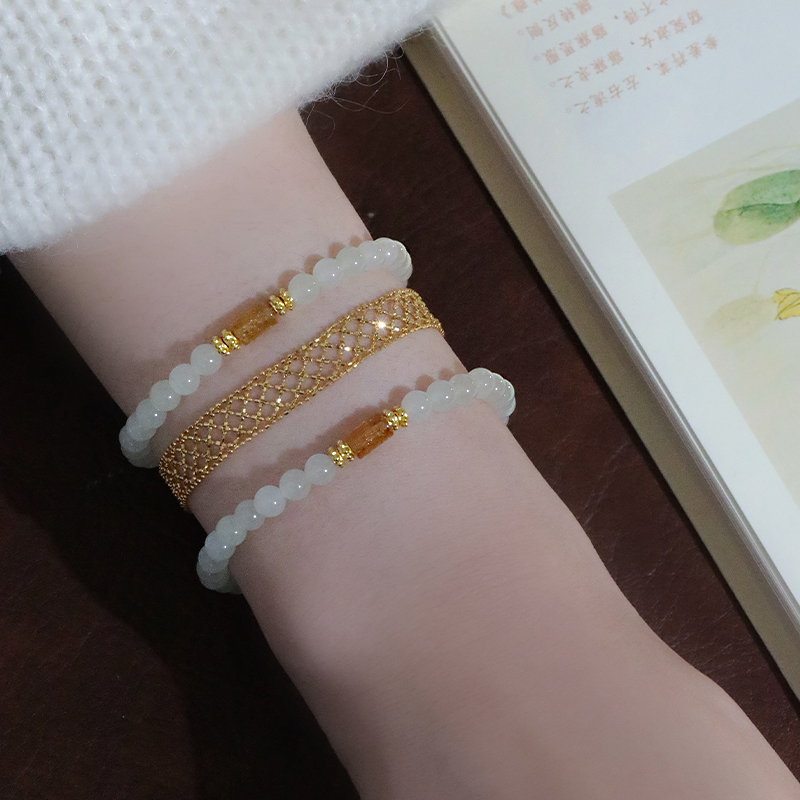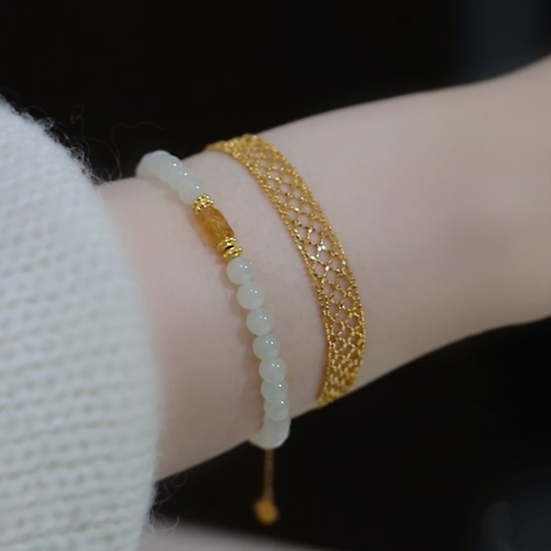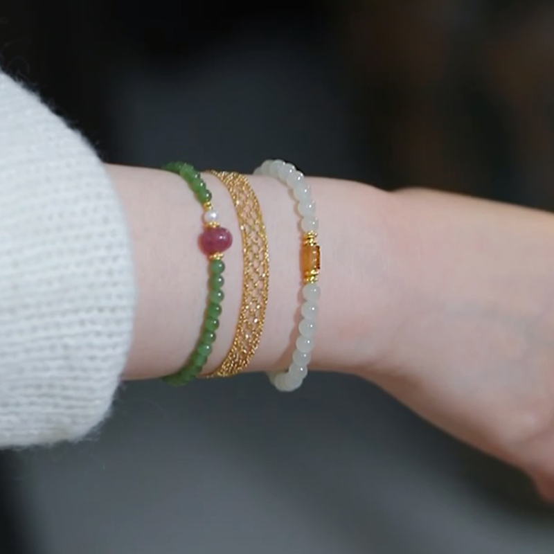 SUMOJEWEL【黄财财】天然和田玉新中式碧玺足金新中式招财手串