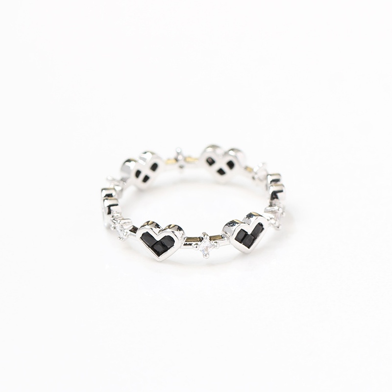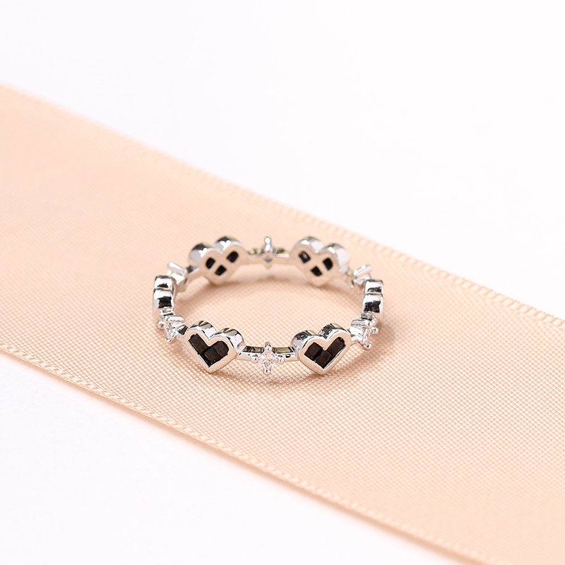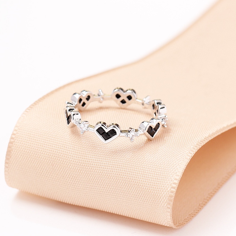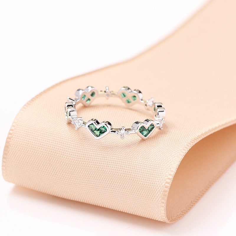 新品夏日甜美精致镶钻绿色黑色两色戒指满圈桃心指环镀金食指
