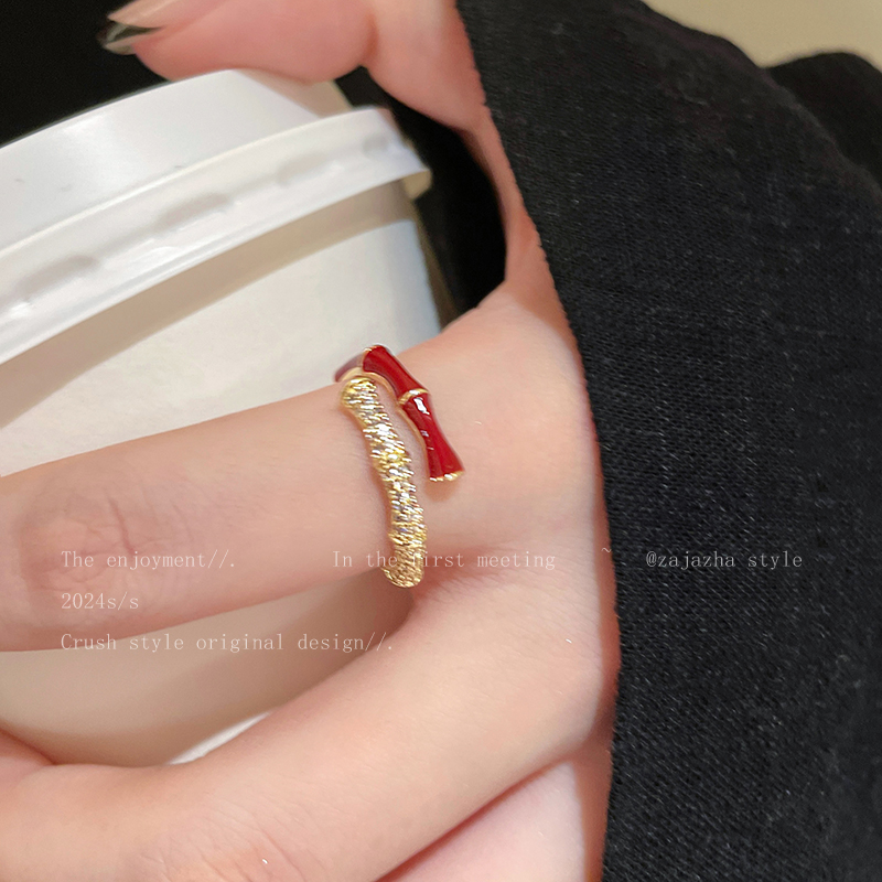安可拉红开口滴釉戒指女款小众设计高级感显白食指戒轻奢绝美指环