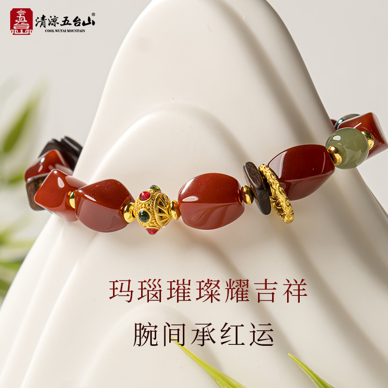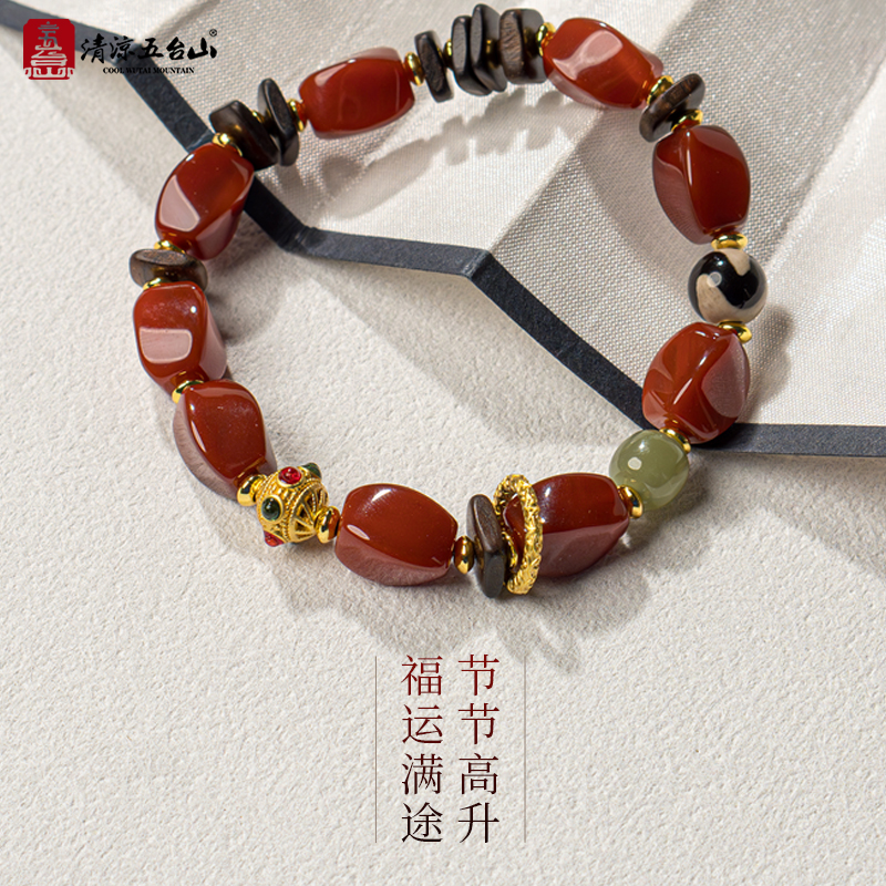 清凉五台山藏式红玛瑙手串【节节高】新中式檀木手链男女款礼物