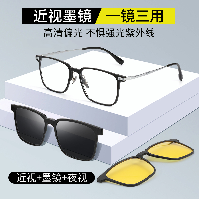 磁吸套镜夹片二合一偏光太阳眼镜墨镜男2024新款近视带度数开车夏