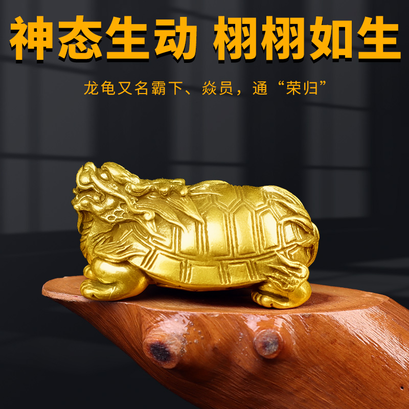 铜龙龟摆件纯铜龙头龟金钱龟玄武赑屃霸下迷你手把件小号桌面摆饰
