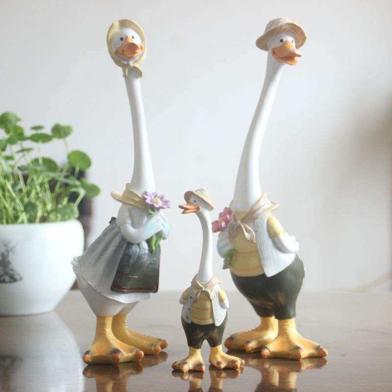 新品创意卡通仿真鸭子家居花园庭院摆件树脂动物手工彩绘工艺