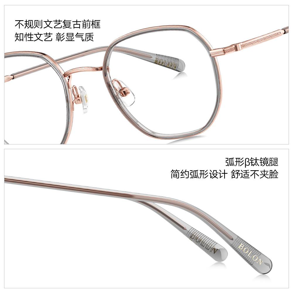BOLON暴龙眼镜新品女款近视素颜镜钛镜腿复古文艺镜架男BJ6139