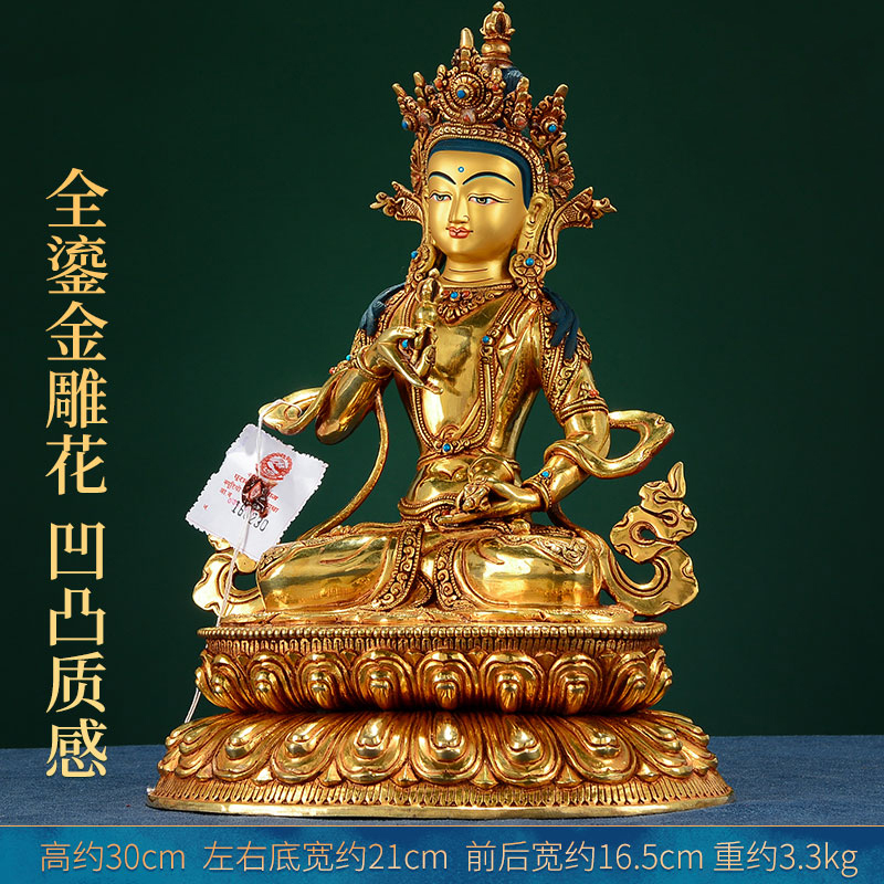 尼泊尔手工金刚萨埵鎏金铜像居家桌面金刚萨垛铜像摆件10寸
