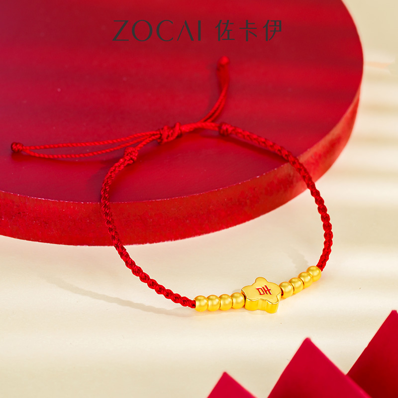 佐卡伊小财神黄金手链小金珠足金珐琅编织红绳手饰手链新款礼物