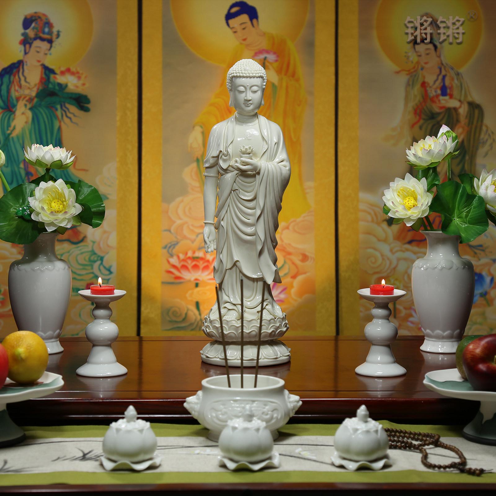 锵锵陶瓷19寸释迦牟尼佛站立像阿弥陀佛像家居禅意如来供奉摆件