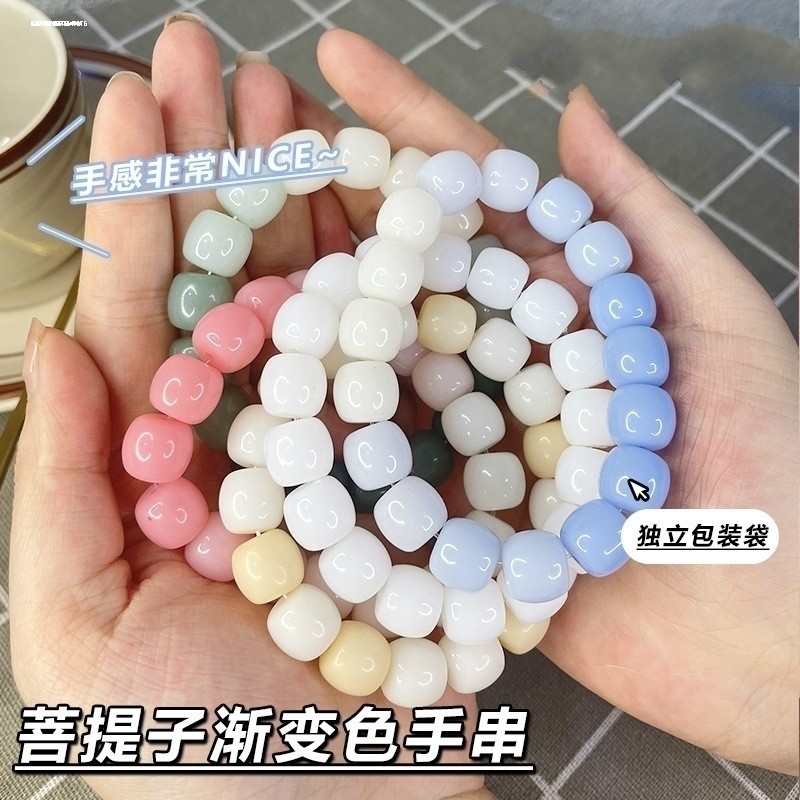仿菩提手串女冰透渐变粉色圆珠绕指柔盘玩手链学生手环手饰品