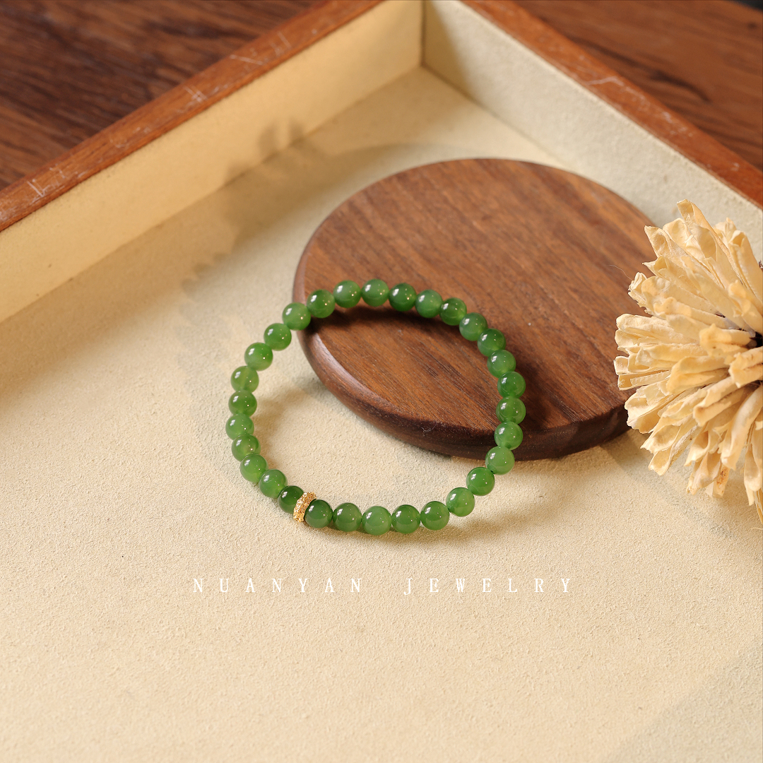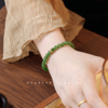 暖言天然和田玉手链女款18k金跑环配饰小众复古文艺绿色珠子手串