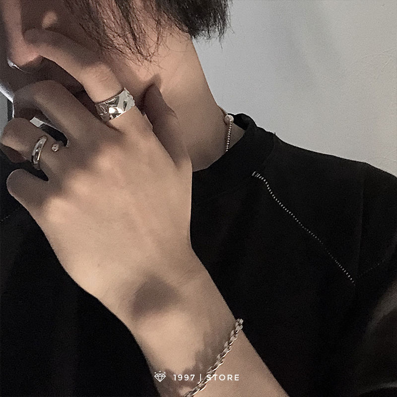 1997store NCM极简山本暗黑风凹凸不规则纹理开口戒指男女情侣