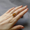【飞星】S925银冰种橘色黄龙玉髓素面长条形戒指艳丽典雅指环