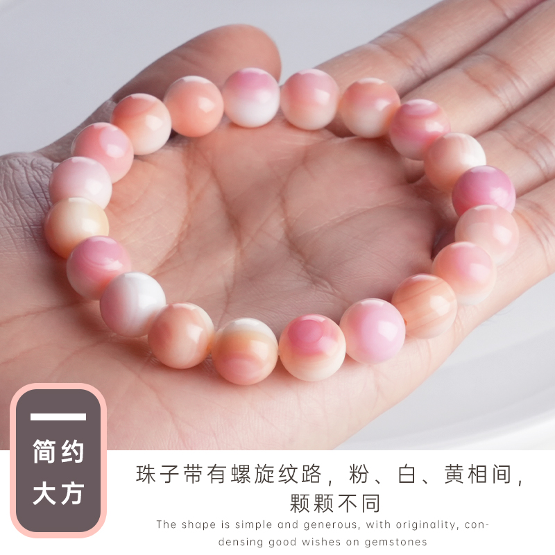 胭脂螺女王贝手串单圈粉贝圆珠手链项链108佛珠饰品闺蜜礼物女款