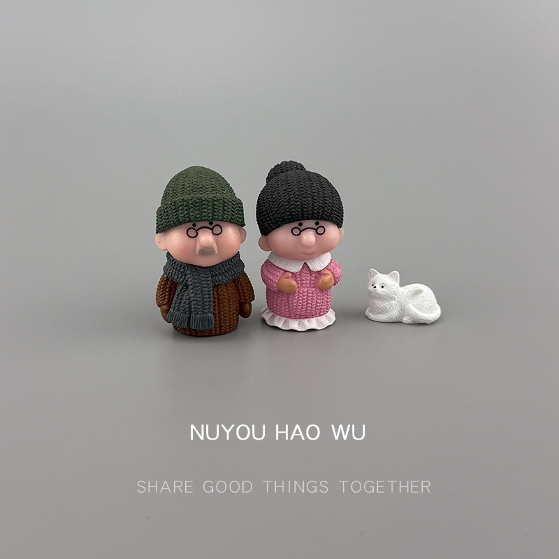 情侣摆件一对小人桌面装饰公婆爷爷奶奶客厅微观造景节日礼物可爱