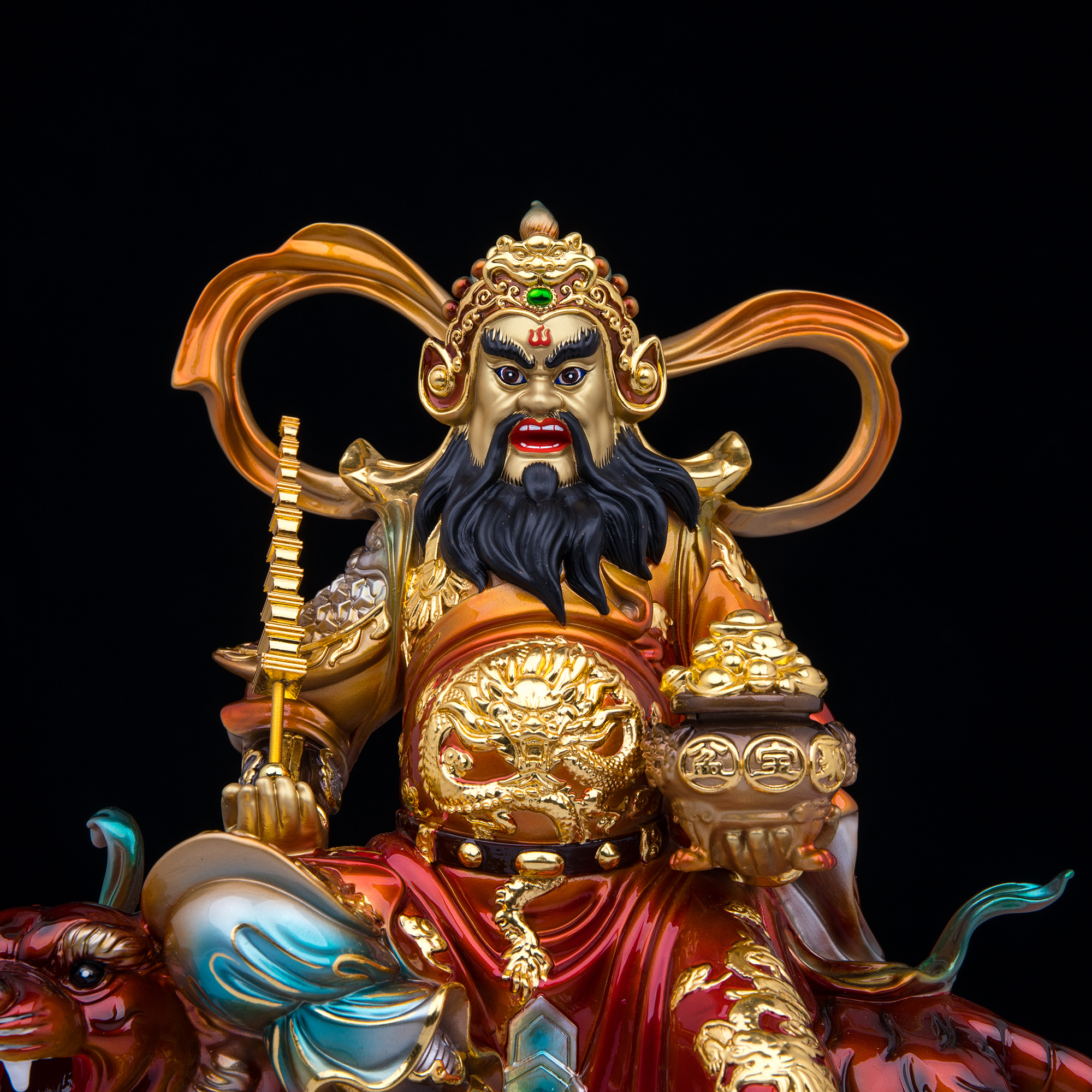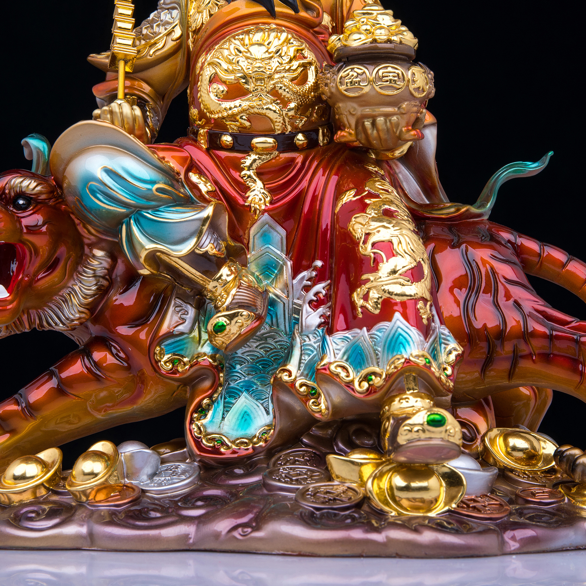 康盛纯铜武财神赵公明神像骑虎赵元帅铜像赵玄坛黑虎招财供奉摆件