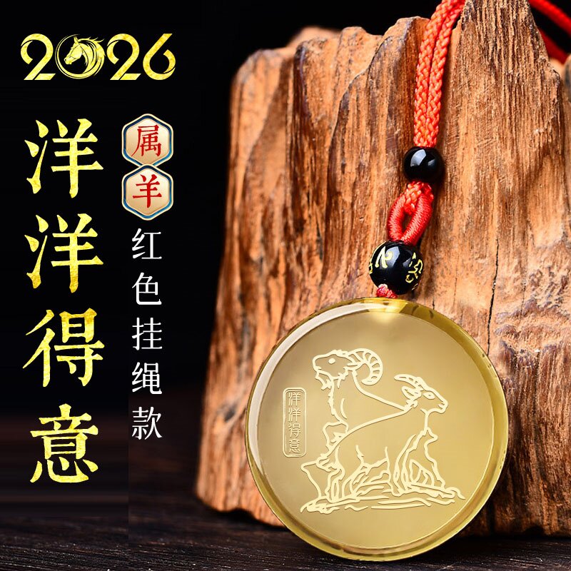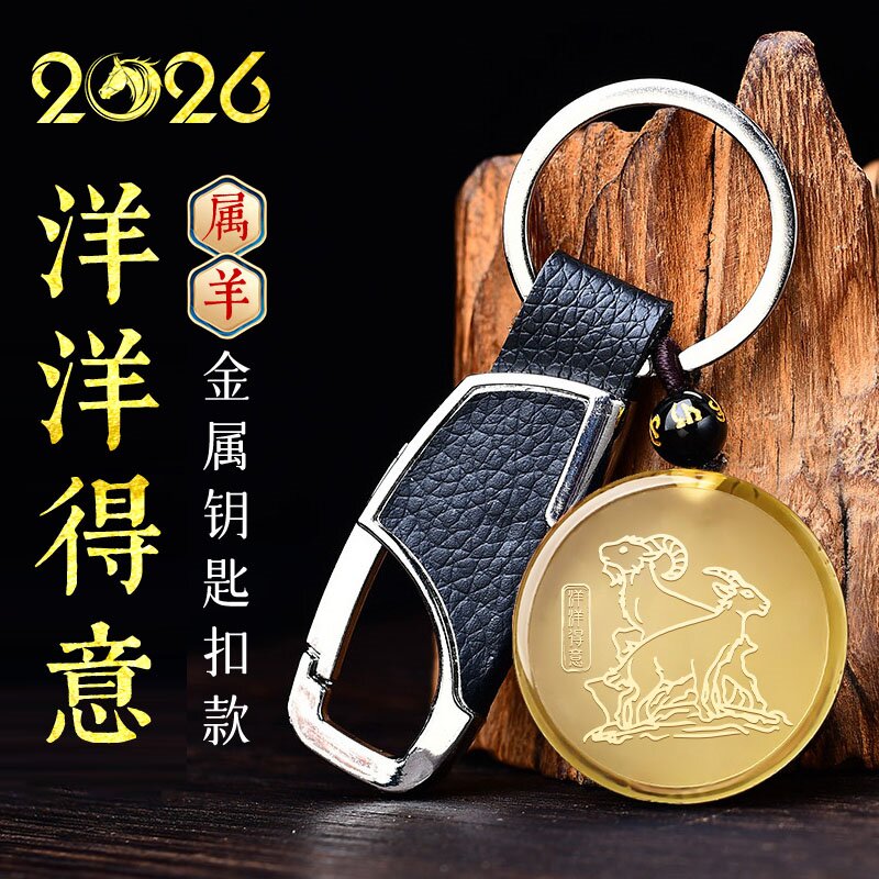 集雅轩宋韶光2026马年吉祥物生肖属羊洋洋得意黄水晶吊坠钥匙扣