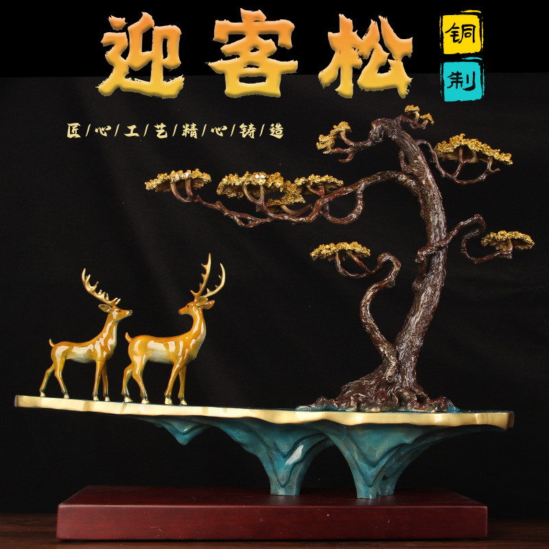工艺品铜迎客松客厅摆件家居玄关铜酒店乔迁开业商务礼品装饰品