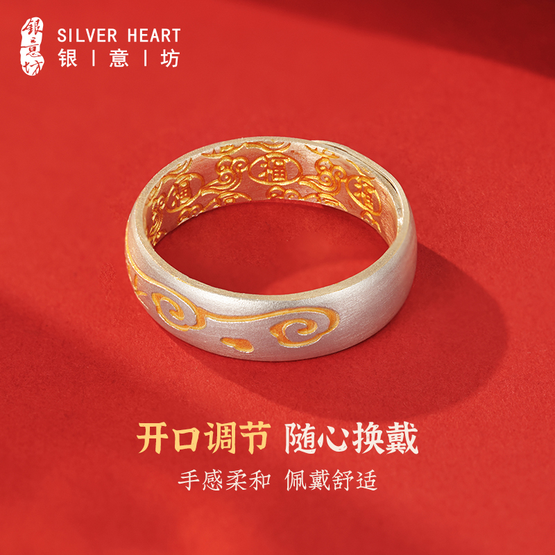 实心9999纯银戒指妈妈款金色女士食指戒金色福送老人奶奶生日礼物