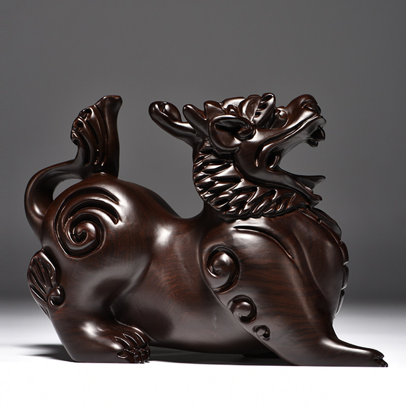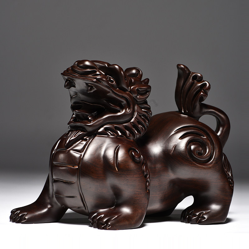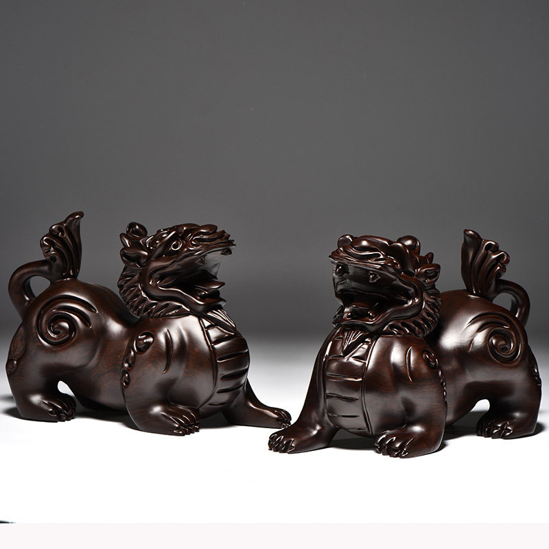 唐趣黑檀木雕貔貅摆件实木皮丘家居客厅玄关装饰品红木工艺品礼品
