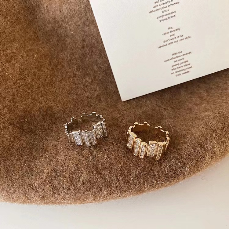 韩国小众锆石微镶交错设计工业风个性金属镀金气质开口可调节戒指