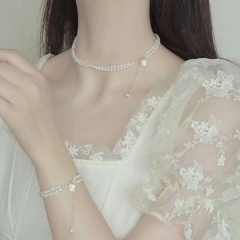 白色珍珠超仙脖子饰品颈链项链女法式双层锁骨链兰铃花气质叠戴