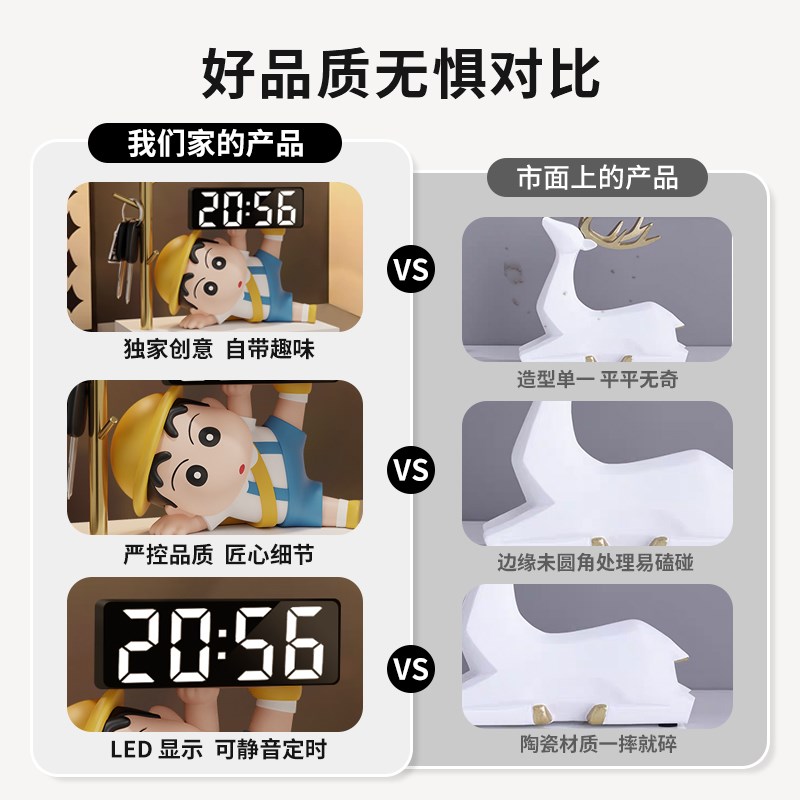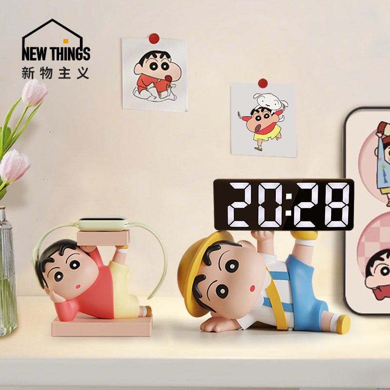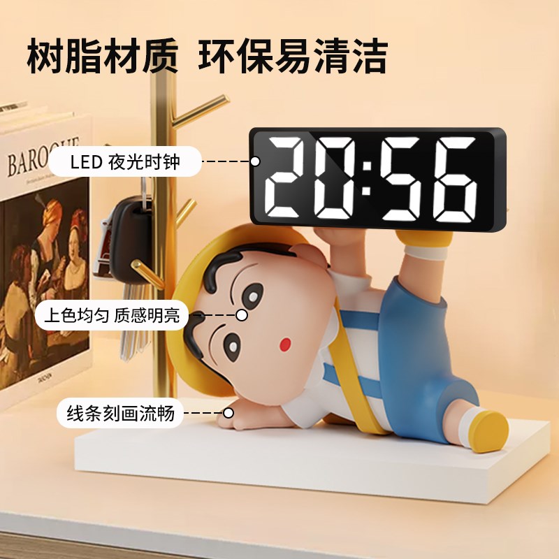 卡通蜡笔小新电子时钟玄关装饰摆件摆台式数字显示器创意手表支架