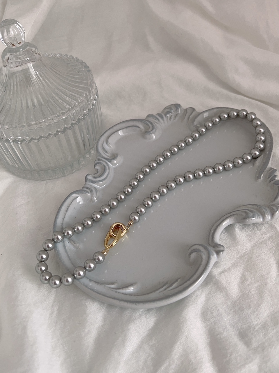真多麻色银灰施家正圆强光珍珠项链多种戴法法式复古女毛衣链2024