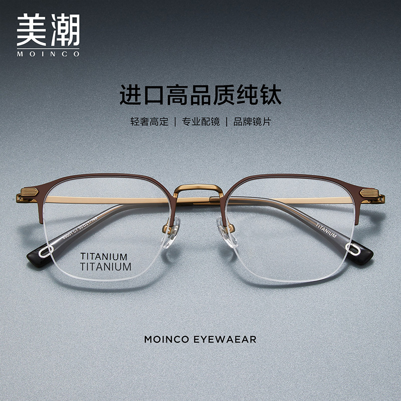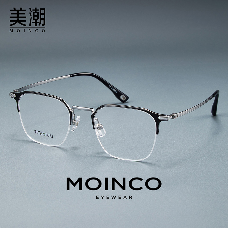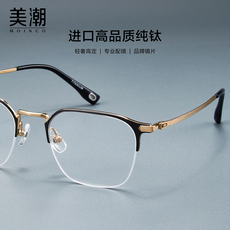 眉线半框近视眼镜男款网上可配度数商务纯钛斯文败类黑色眼睛镜架