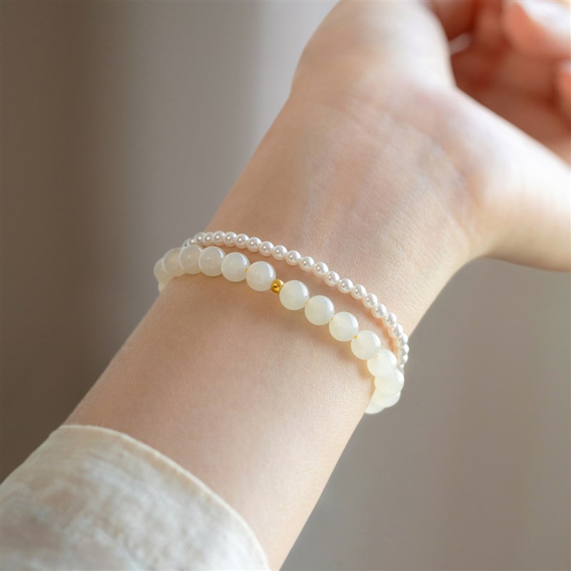 速发秋月无边丨和田玉蜂蜜水 6mm圆珠简约时尚浅糖初恋色温柔百撘