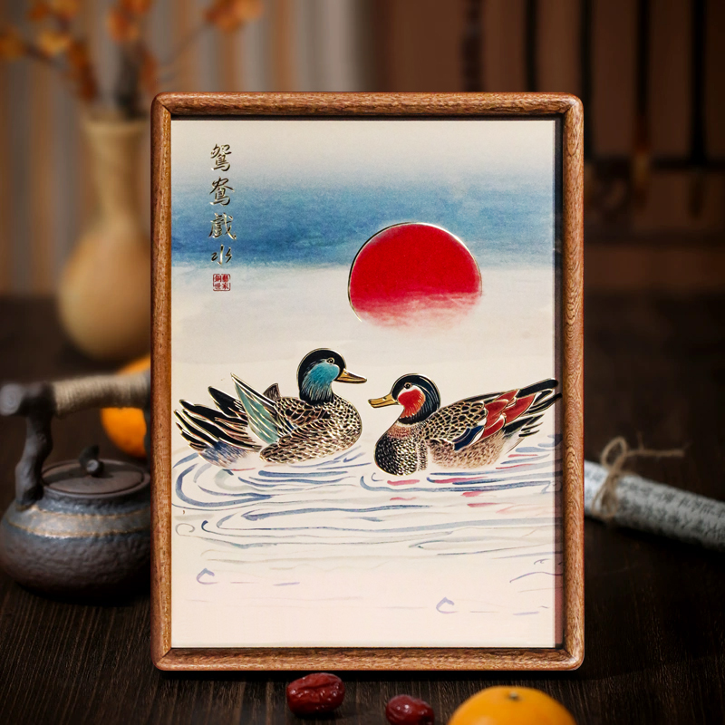 铜艺世家鸳鸯戏水铜雕画桌面摆件手工錾刻婚房装饰画摆台结婚礼物