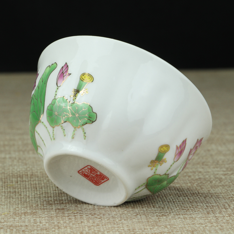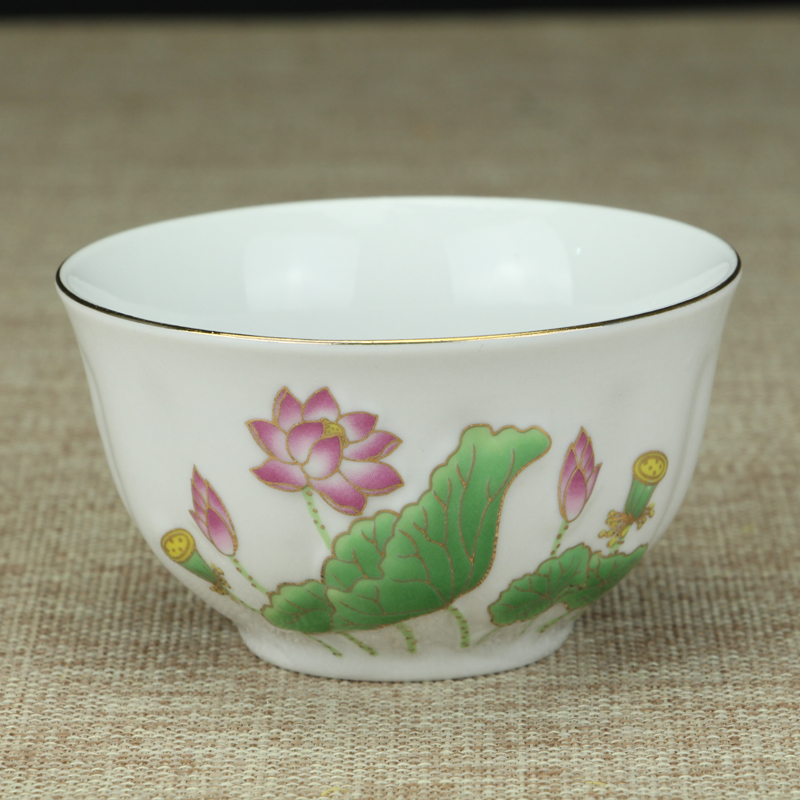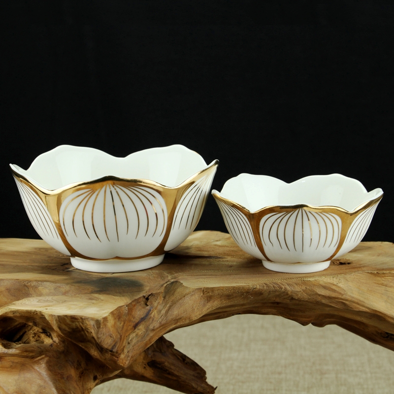 陶瓷供杯 供佛水碗浮雕莲花碗供佛斋碗七宝碗八吉祥供杯供碗摆件