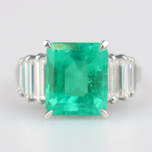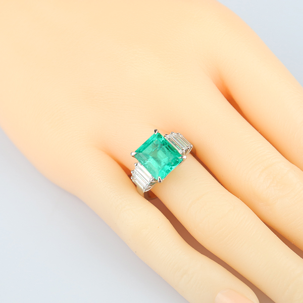 中古95新日本进口商品哥伦比亚祖母绿方形钻石戒指铂金90052号