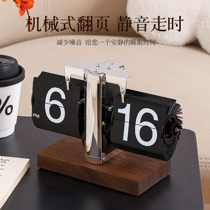 自动翻页时钟桌面摆件北欧复古机械表摆台式数字钟表创意客厅装饰
