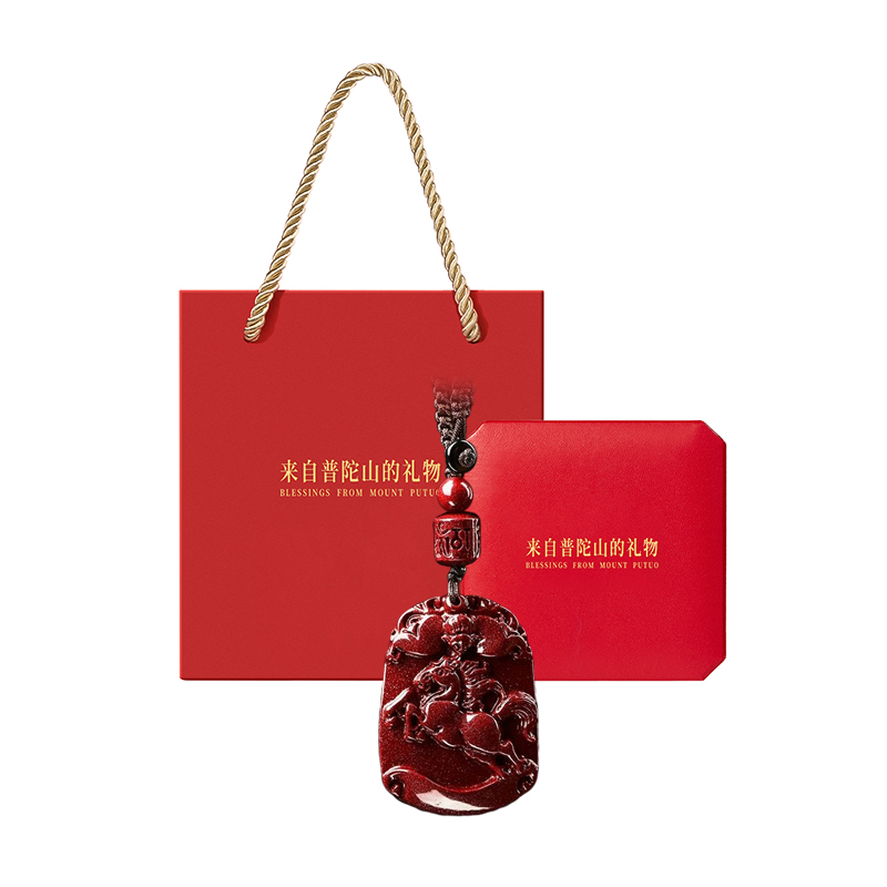 遇见普陀山原矿朱砂十二生肖吊坠男女款马年本命年汽车钥匙扣挂件