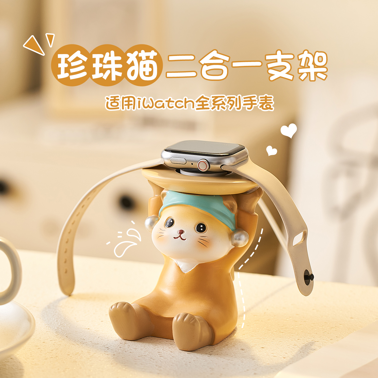 珍珠猫手机桌面支架创意可爱手表充电器办公室工位装饰品礼物女生