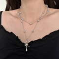 潮酷不规则水晶串珠闪亮幻彩项链女小众高级感气质复古锁骨链颈链