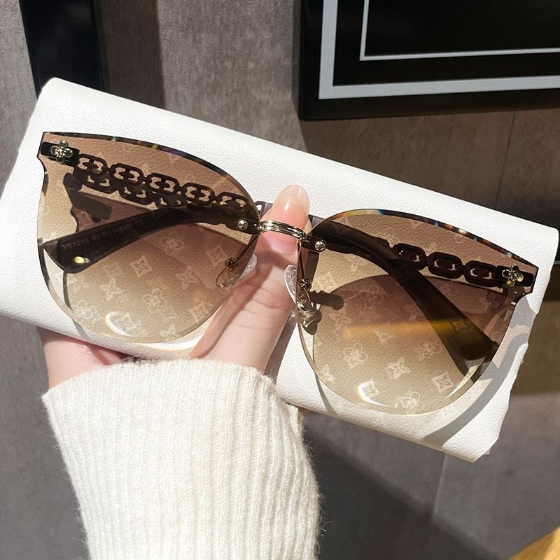 2024新款无框切边字母款高级感满印花女太阳镜小红书抖音网红墨镜