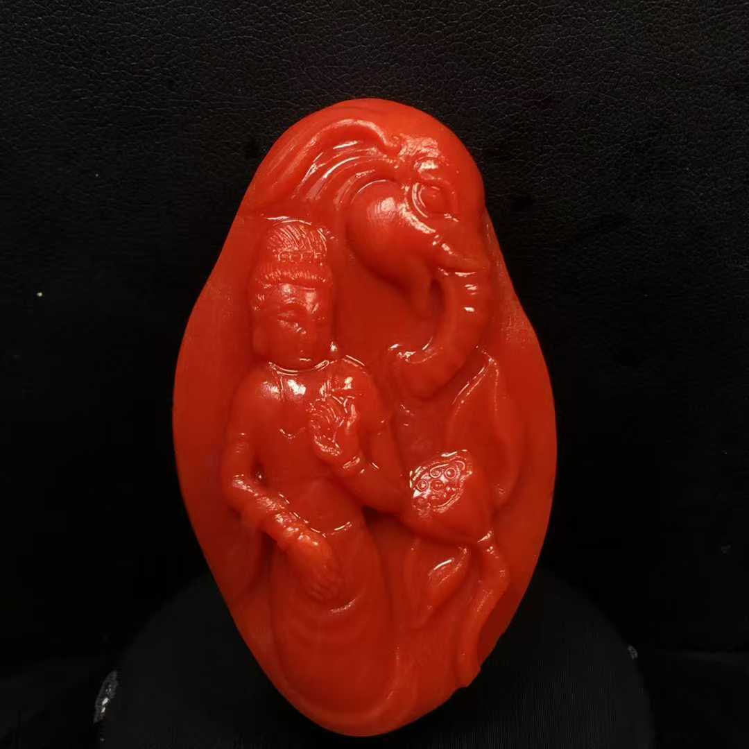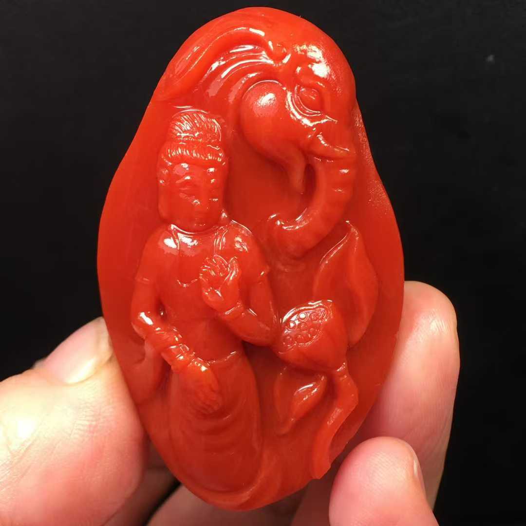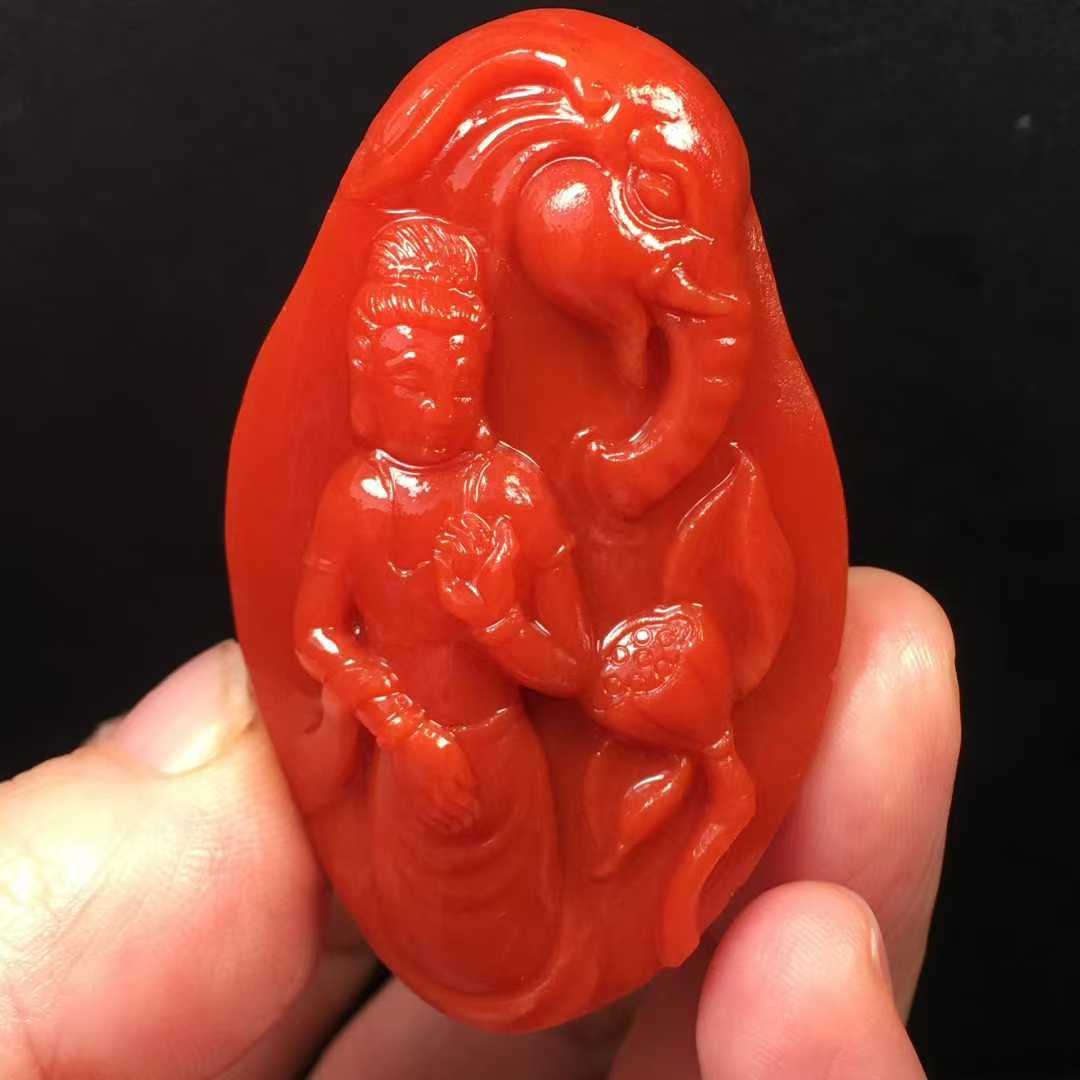 保山南红玛瑙雕件普贤观音菩萨吊坠挂件锁骨链男女款苏工雕刻