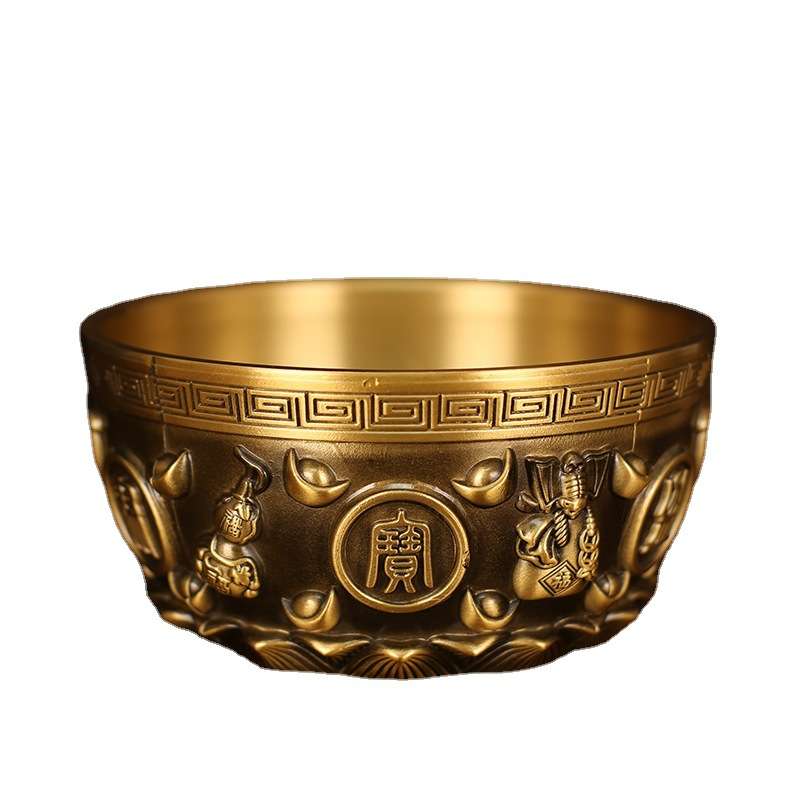 黄铜聚宝盆碗摆件桌面摆件客厅办公室乔迁新居客厅装饰摆件礼物