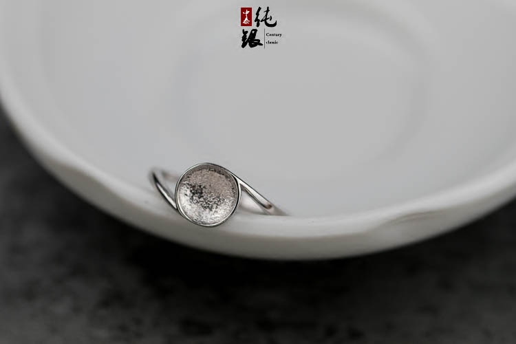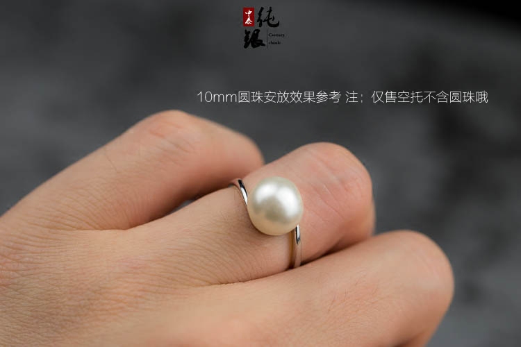 简约珍珠圆珠托戒托s925纯银DIY女款空托戒指托活口未镶嵌9-11mm