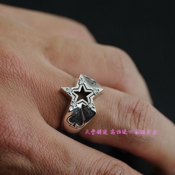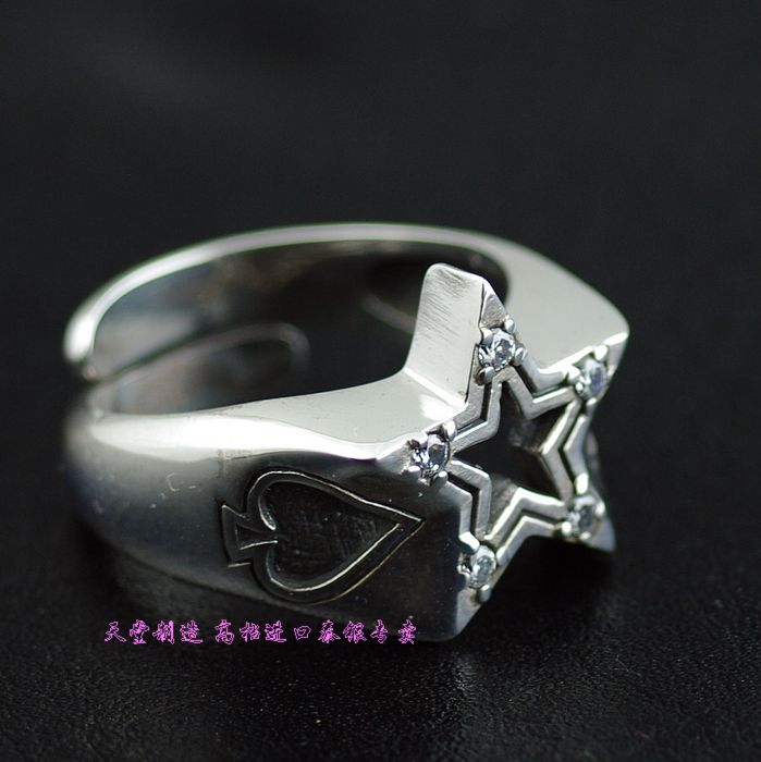*正品GV新款镶钻五角星五星开口925纯银戒指可调节