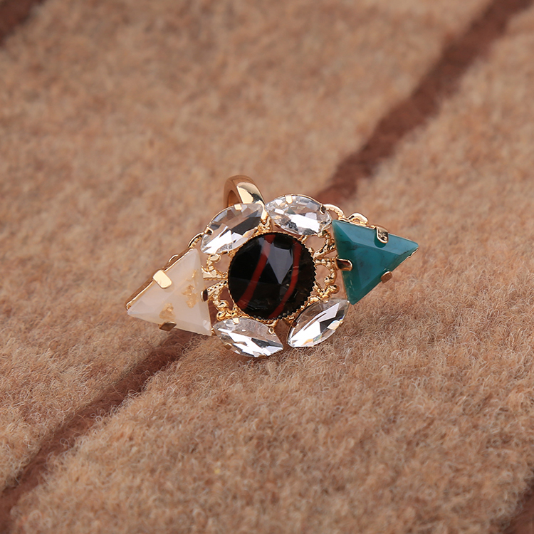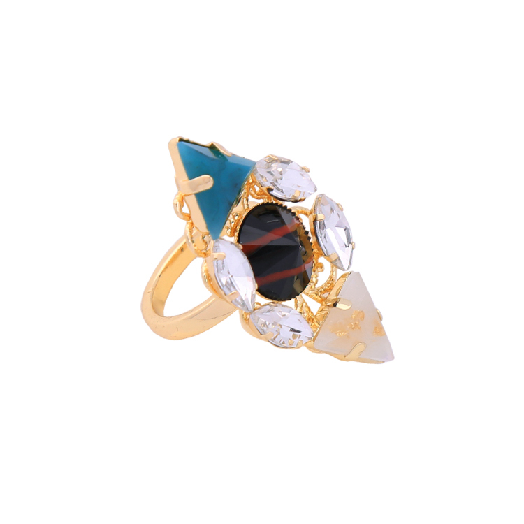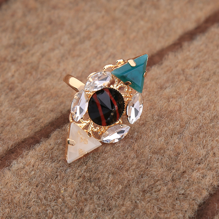 戒指女 欧美复古风格个性百搭饰品 镶钻宝石夸张气质花纹女士戒指