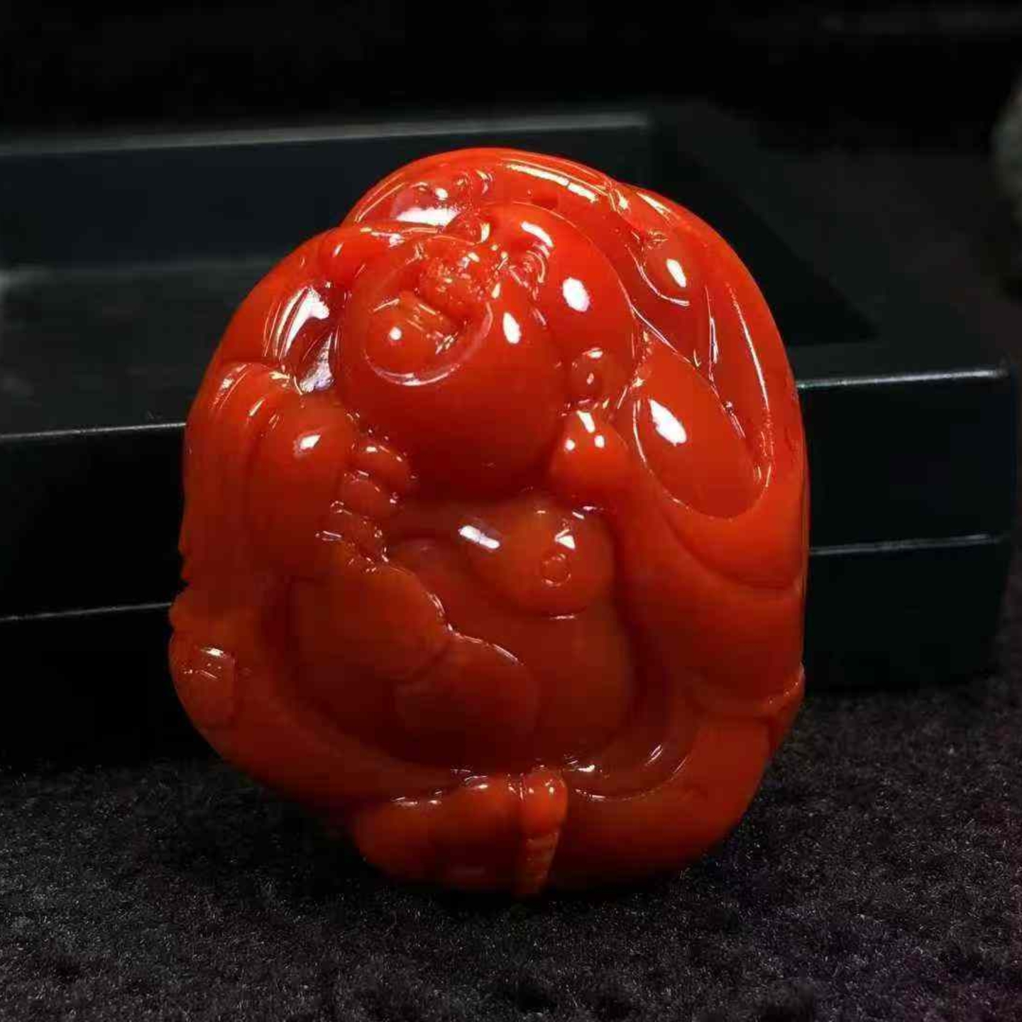 南红玛瑙弥勒佛吊坠挂件锁骨链男女款满肉柿子红瓦西笑佛雕件