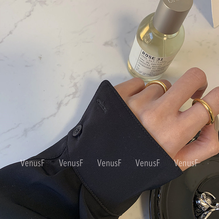 圆粗款光面 韩国博主款镀金色钛钢戒指指环男女情侣简约极简欧美