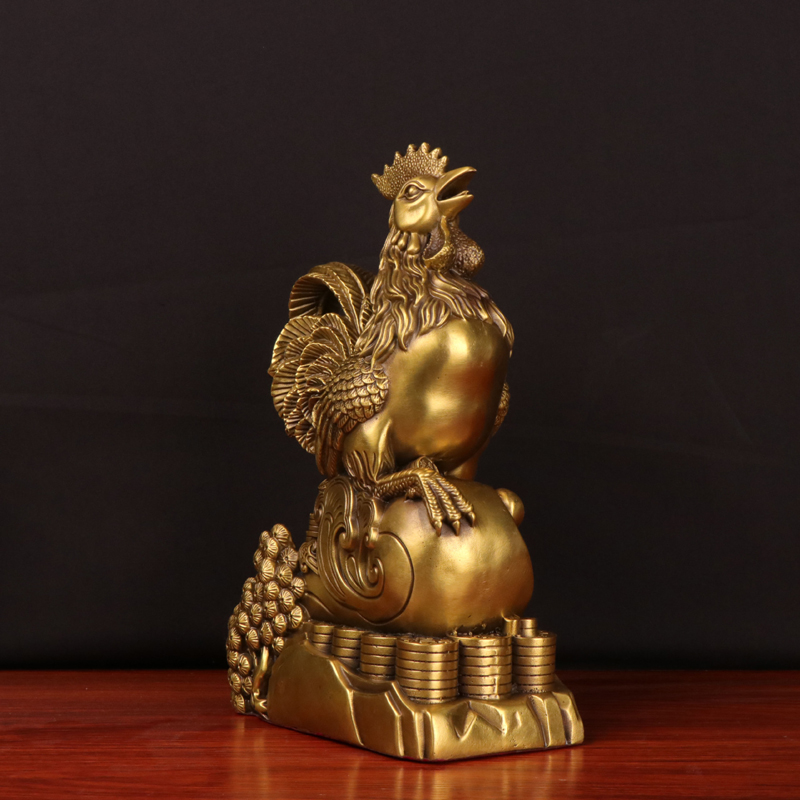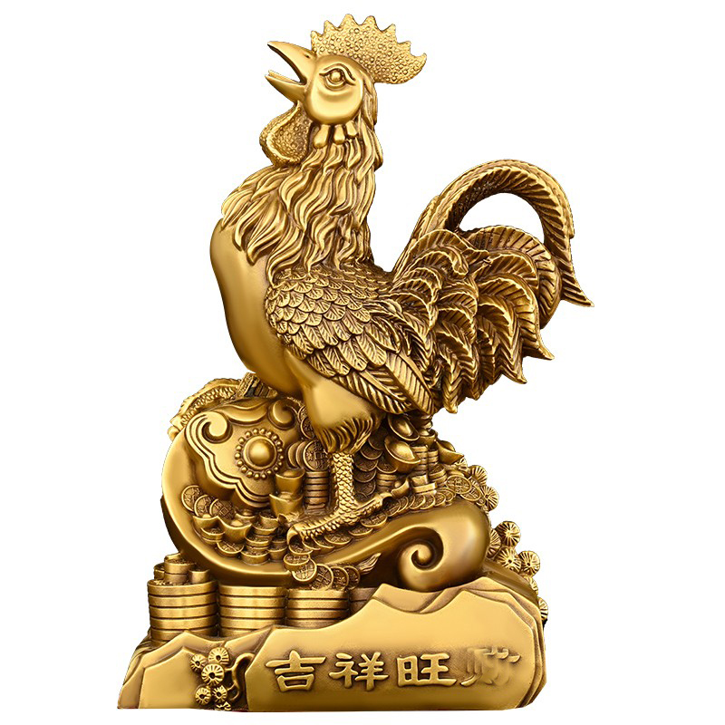 妙如意 铜公鸡摆件金鸡元宝如意鸡生肖铜鸡吉祥旺彩鸡摆设工艺品