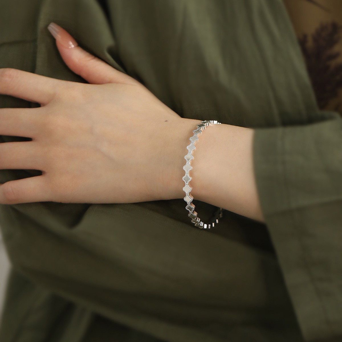 足银999四叶草碎冰冰闭口手镯女时尚精致民族风实心镯子手环礼物