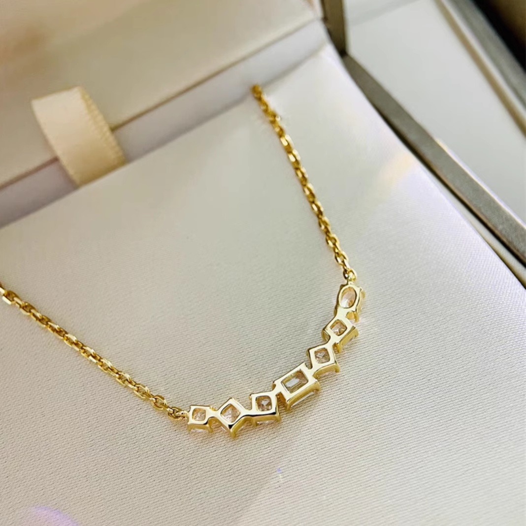纯18K玫瑰金镶嵌美国进口D色莫桑石异形排钻微笑项链AU750简约潮