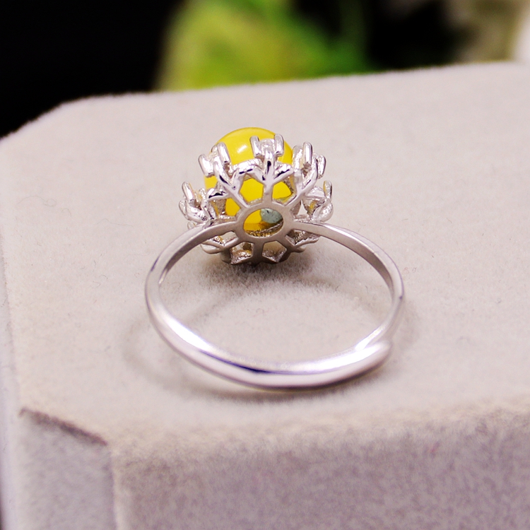 S925纯银戒指空托女款镂空圆珠托盘DIY珍珠蜜蜡松石玉石镶嵌托6*6