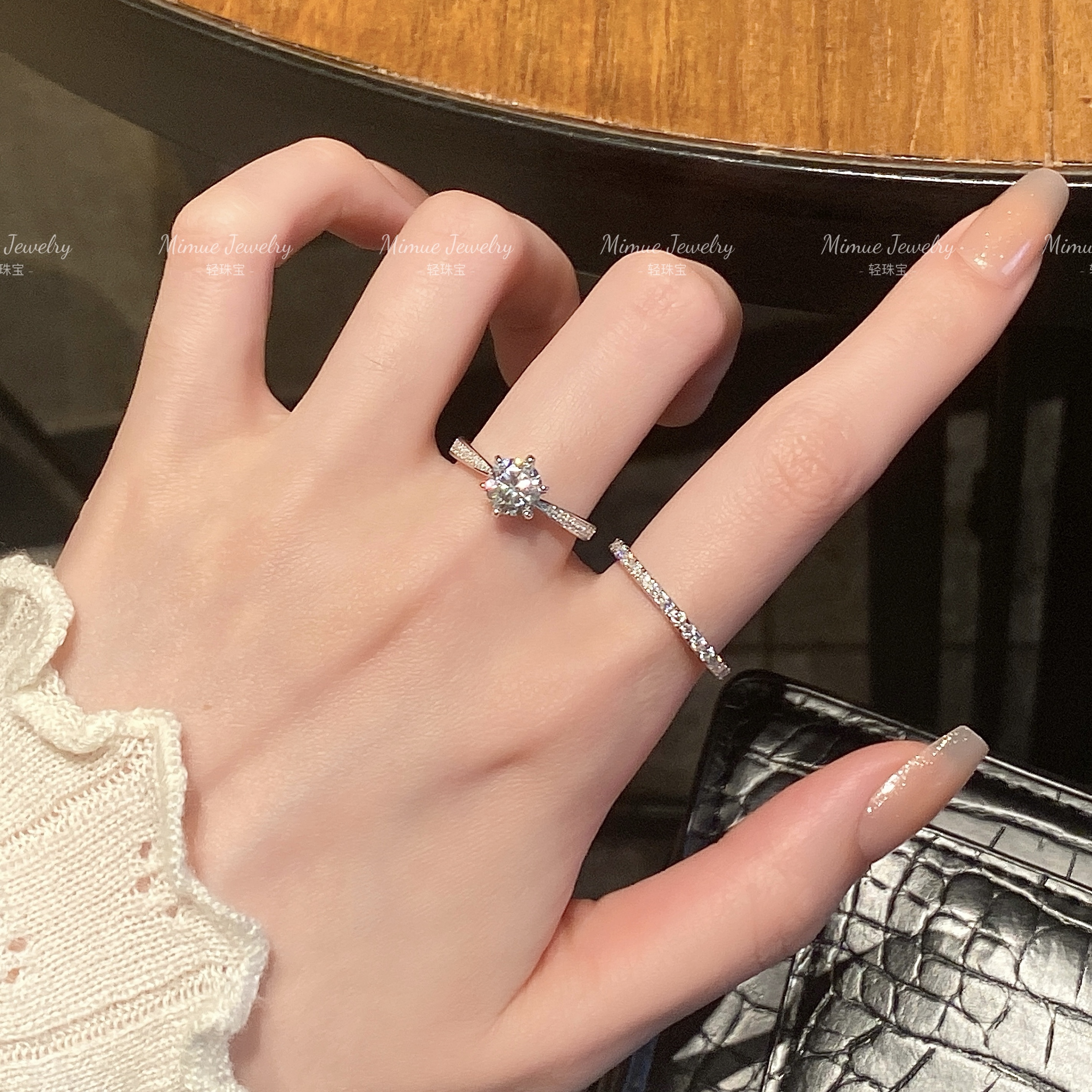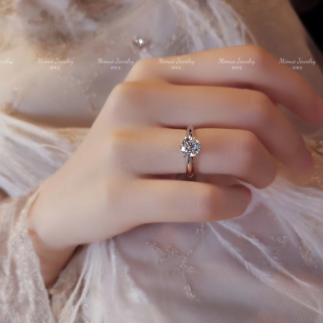 新款莫桑钻T六爪钻戒培育钻925纯银戒指女小众高级婚戒礼物女